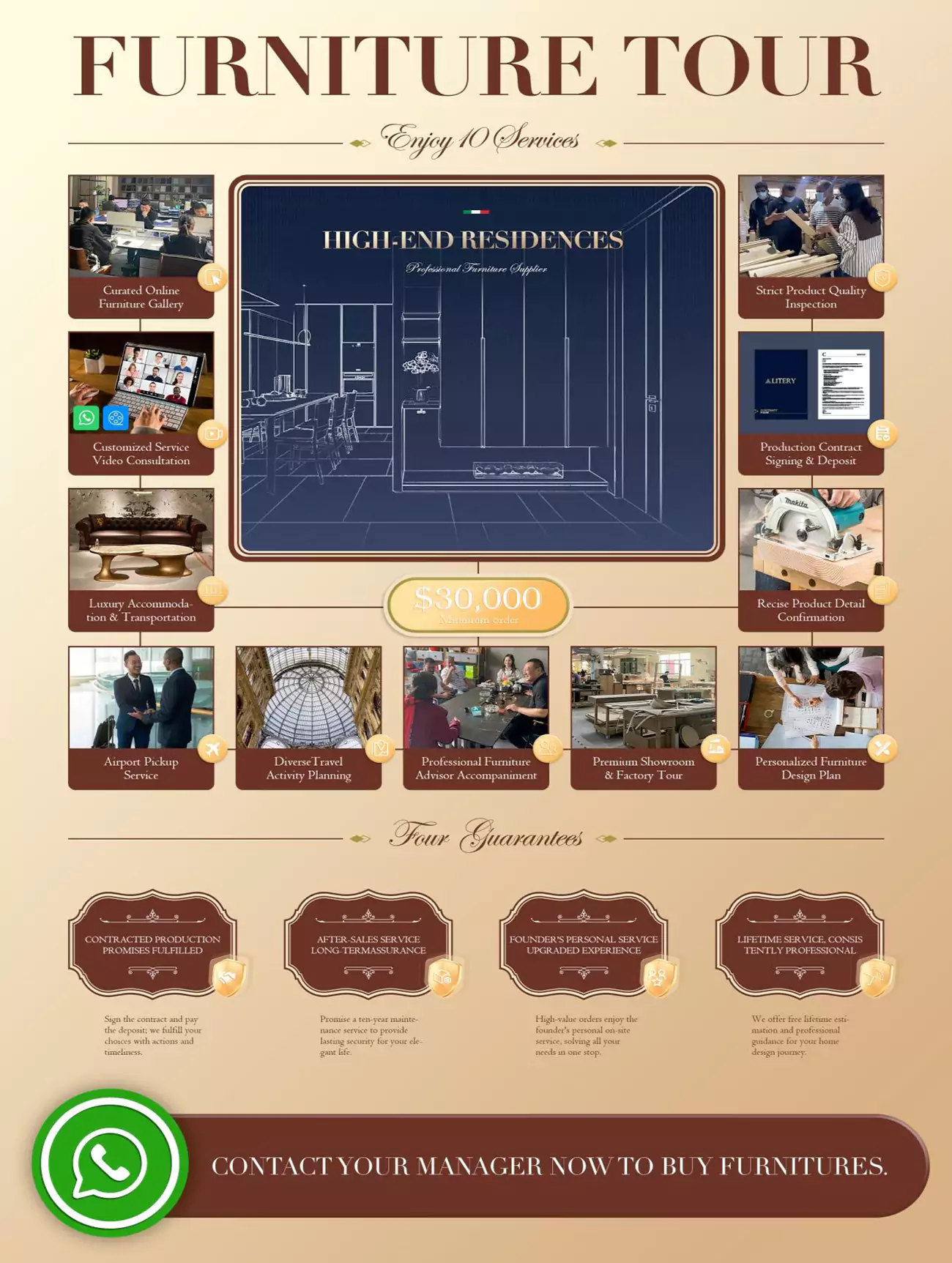 Special Offer: If your total furniture order exceeds $30,000, the tour is free! Your $999 deposit will be deducted from your furniture purchase.